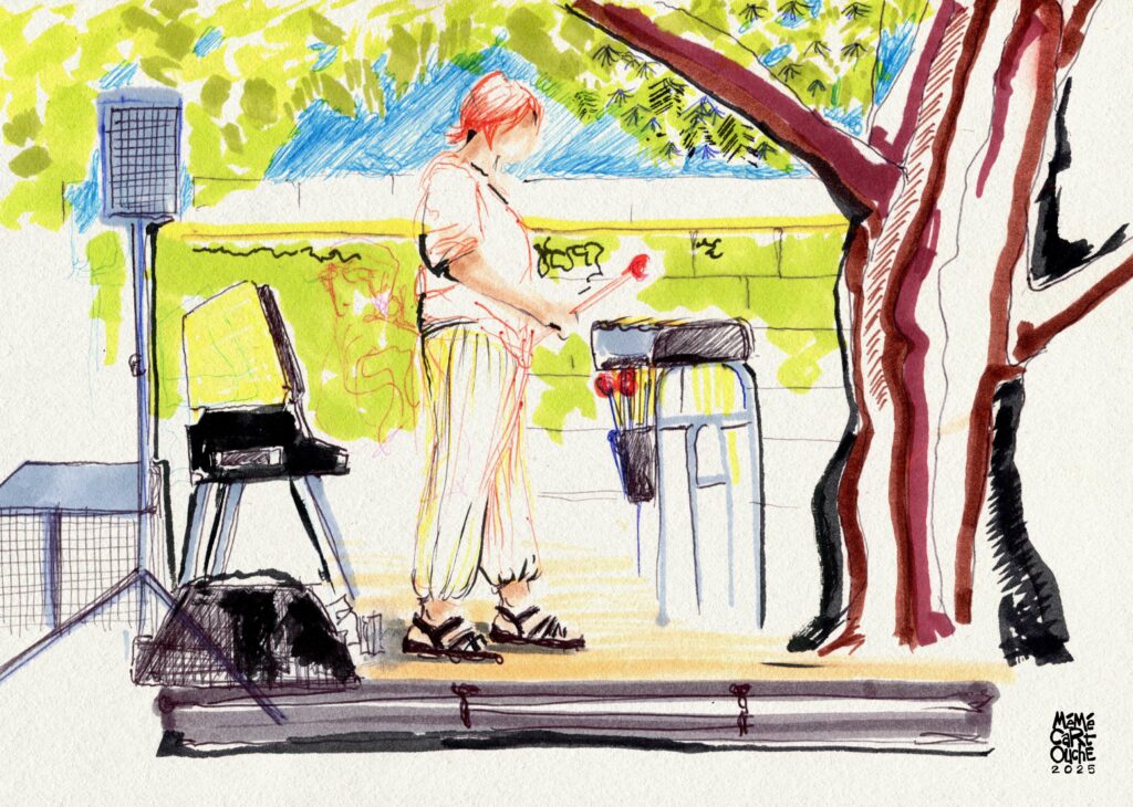 Nyum est une musicienne multi-instrumentiste de formation classique qui allie des sons acoustiques et synthétiques. Elle mélange des sons électroniques, d’échantillonnages, de vibraphone, de rhodes, d’orgue, de voix, de n’goni (harpe africaine) et de petites percussions, tissant ainsi une toile musicale riche et captivante. Nyum fait partie de ces musiciennes qui cherchent des sonorités et qui transforment le bruit en musique. Elle puise dans une palette aussi vaste que surprenante : des murmures de l’eau aux craquements du papyrus, des chuchotements du vent aux battements du cœur de l’Univers enregistrés par la NASA. Recherche de textures, création et expérimentation comme fil conducteur ! Chaque composition raconte une histoire. C’est une invitation au voyage, une plongée dans un monde où le temps se suspend et où les rêves prennent vie.